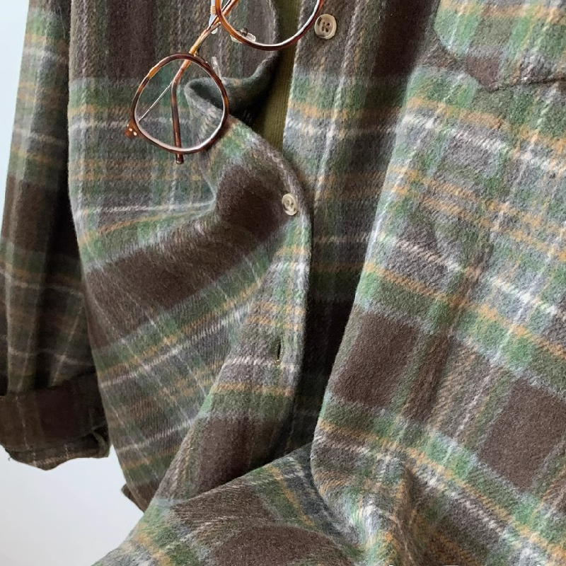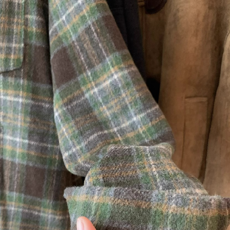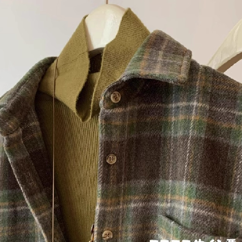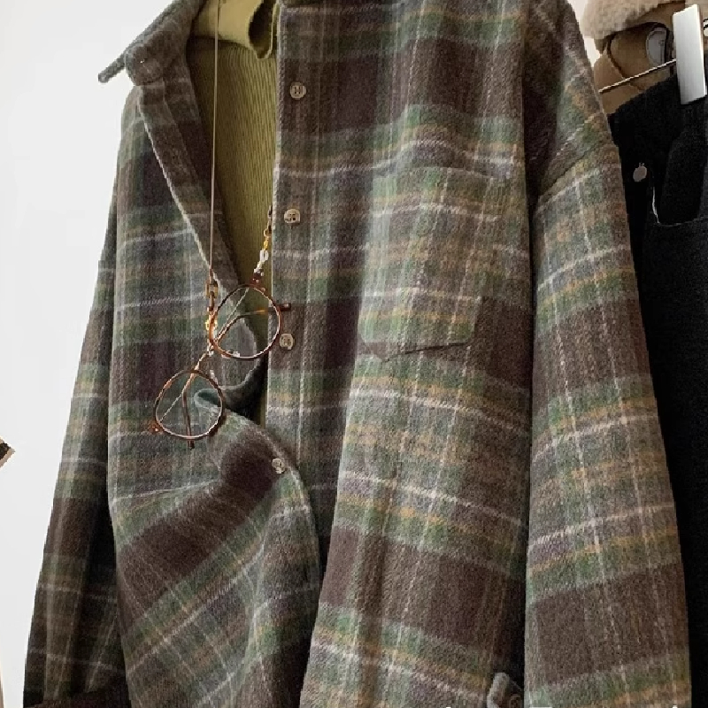 胖MM大码200斤毛呢格子长袖衬衫女春秋季内搭叠穿翻领衬衣上衣T恤
