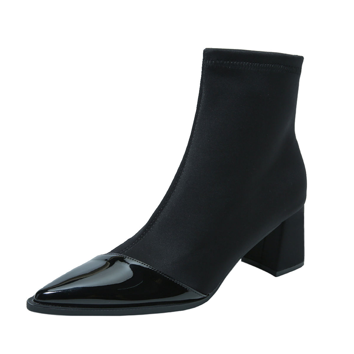 真皮高跟尖头短靴女2025年春秋季新款法式单靴高级感粗跟瘦瘦靴子