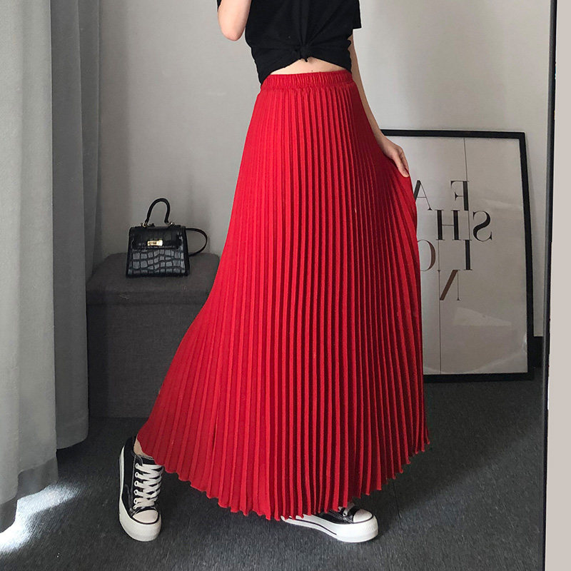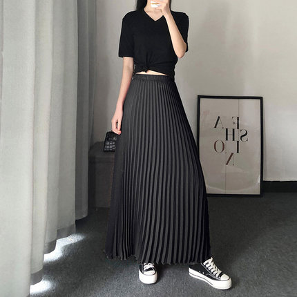 高腰显瘦春夏a字风琴雪纺半身裙
