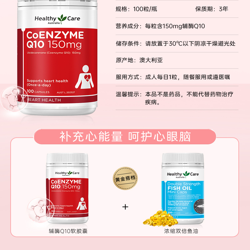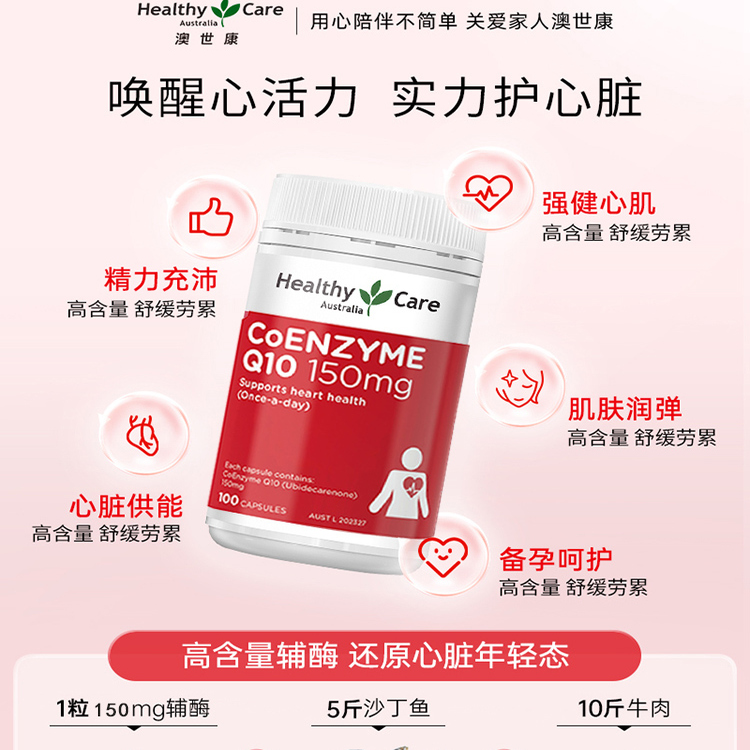 HealthyCare原装进口辅酶q10软胶囊保护心脏心肌健康中老年保健品