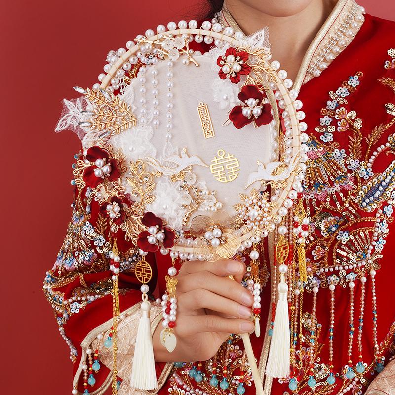 团扇新娘结婚diy材料包手捧花高级中式婚礼汉服婚纱礼服喜扇送礼