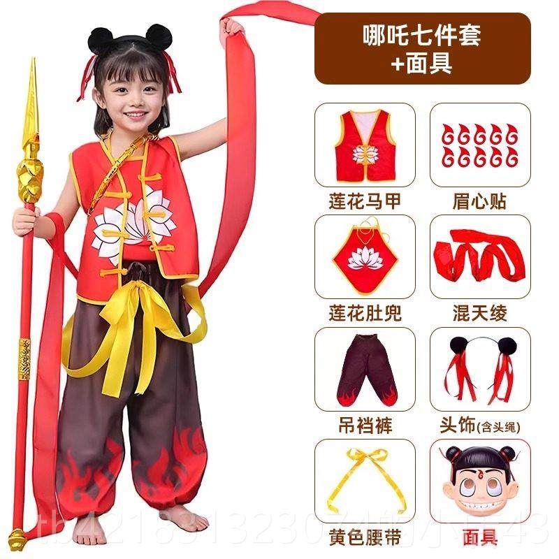 高档哪服装儿童COS套新款男女装童表演服儿园哪咤咤幼国潮风演出