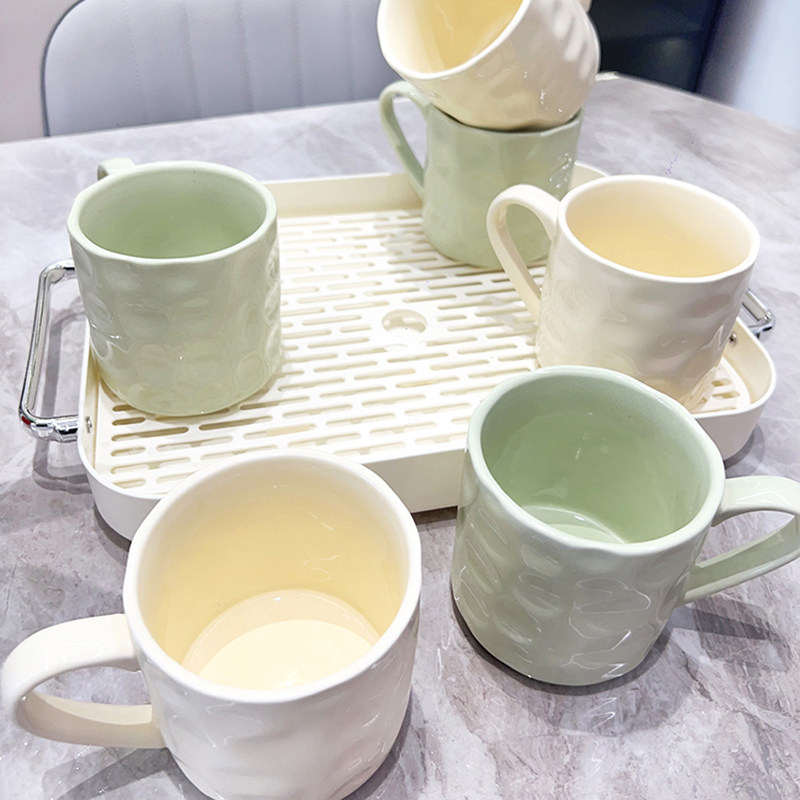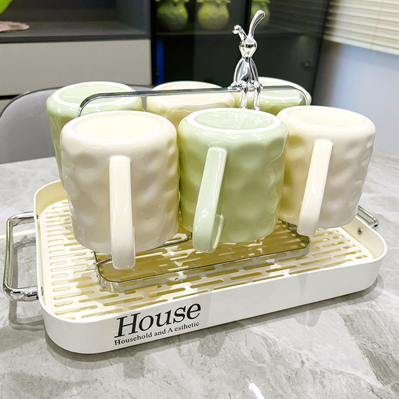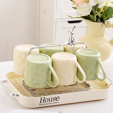 奶油风高颜值水具套装2025新款客厅家用陶瓷杯子乔迁茶杯杯具托盘