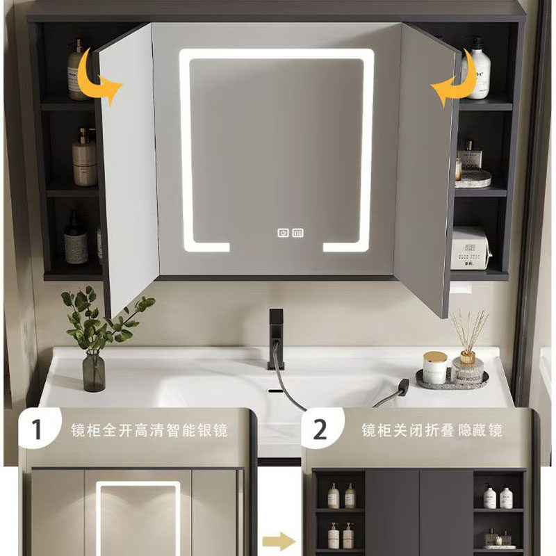 智能折叠风水镜浴室柜陶瓷一体盆洗脸盆柜组合洗手池卫生间洗漱台