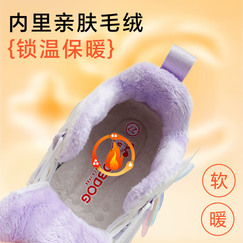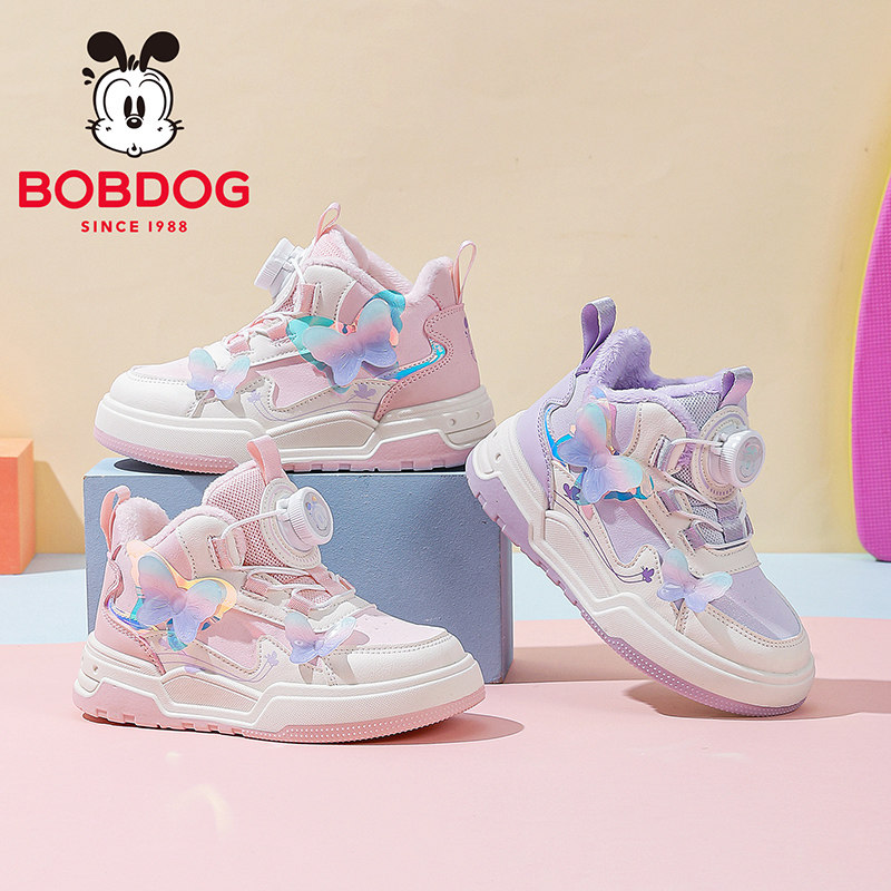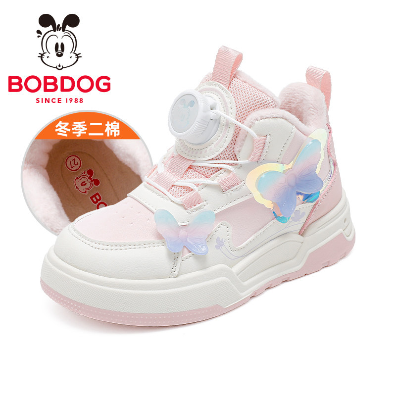 巴布豆童鞋女童高帮板鞋2025新款秋冬女孩加绒鞋子二棉儿童运动鞋