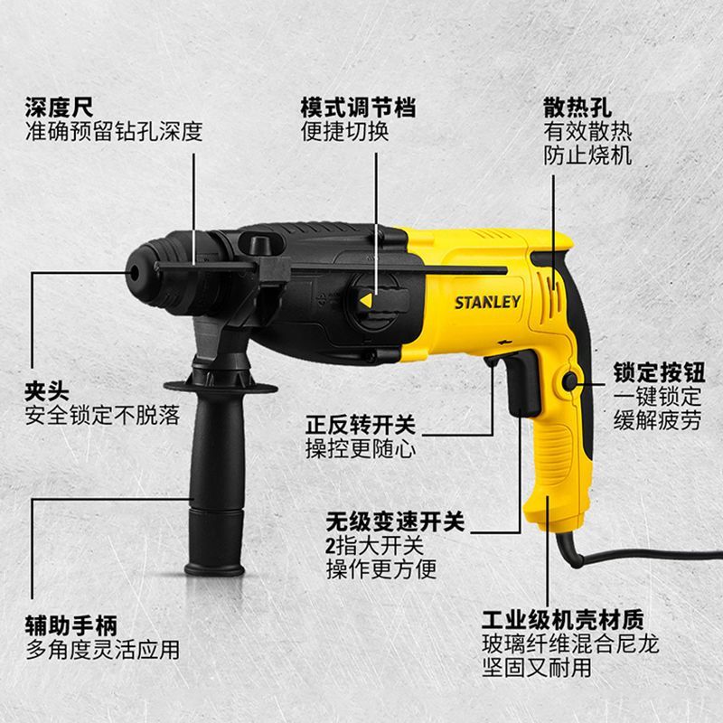 史丹利电锤电镐多功能专业冲击钻电钻大功率混凝土手枪钻电动工具