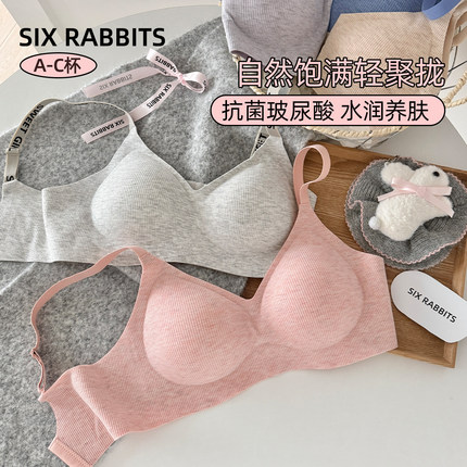 六只兔子抑菌内衣女小胸聚拢防下垂胸罩无钢圈侧收副乳无痕文胸