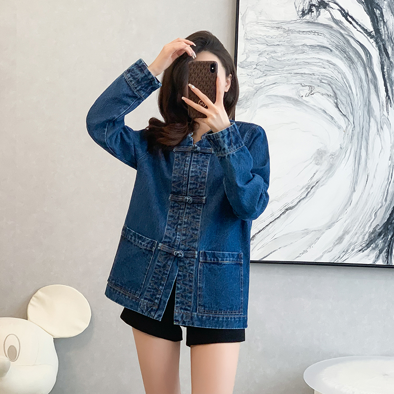 2025春季新中式盘扣外套牛仔外套国宽松休闲复古高级感上衣夹克潮