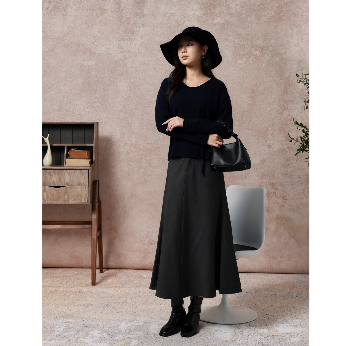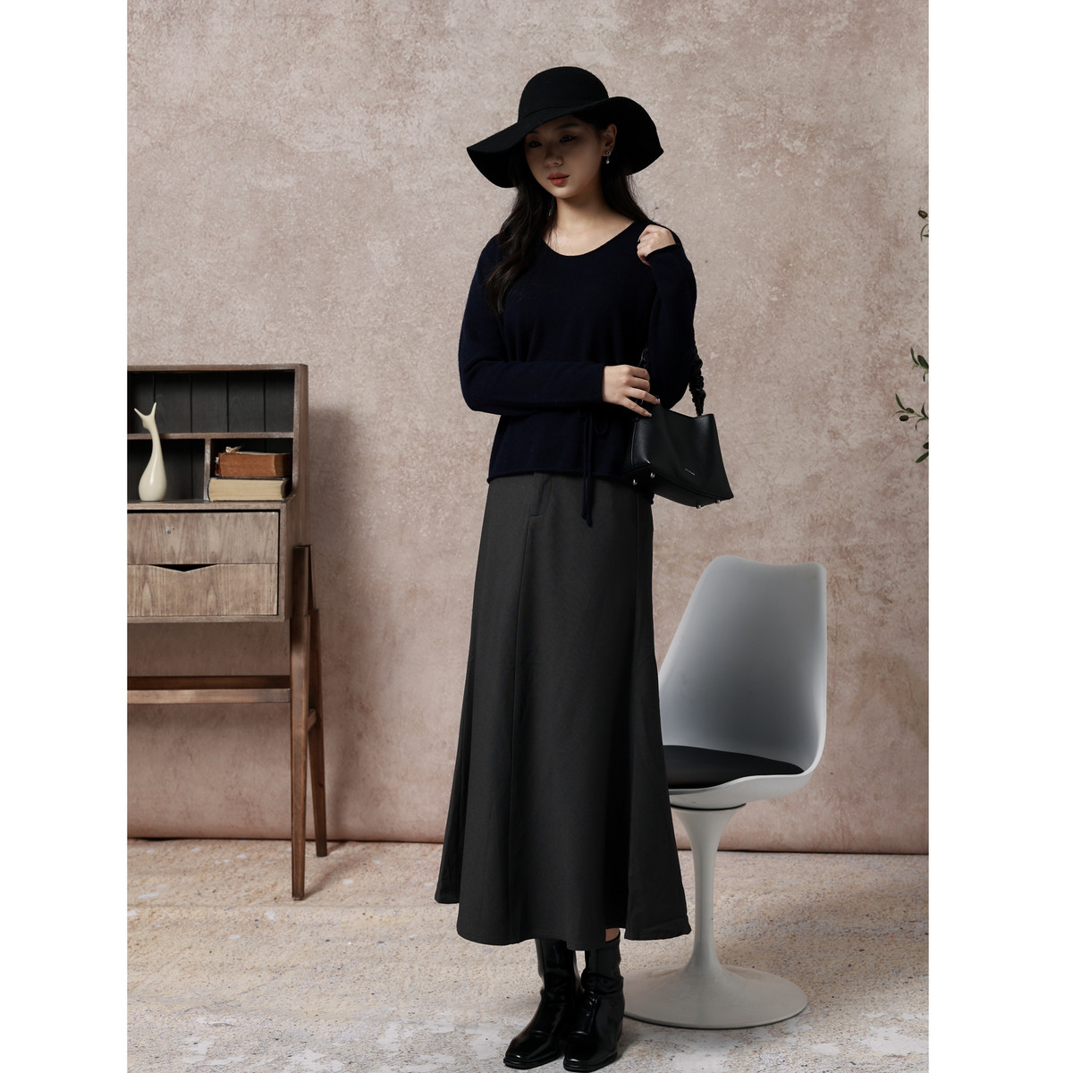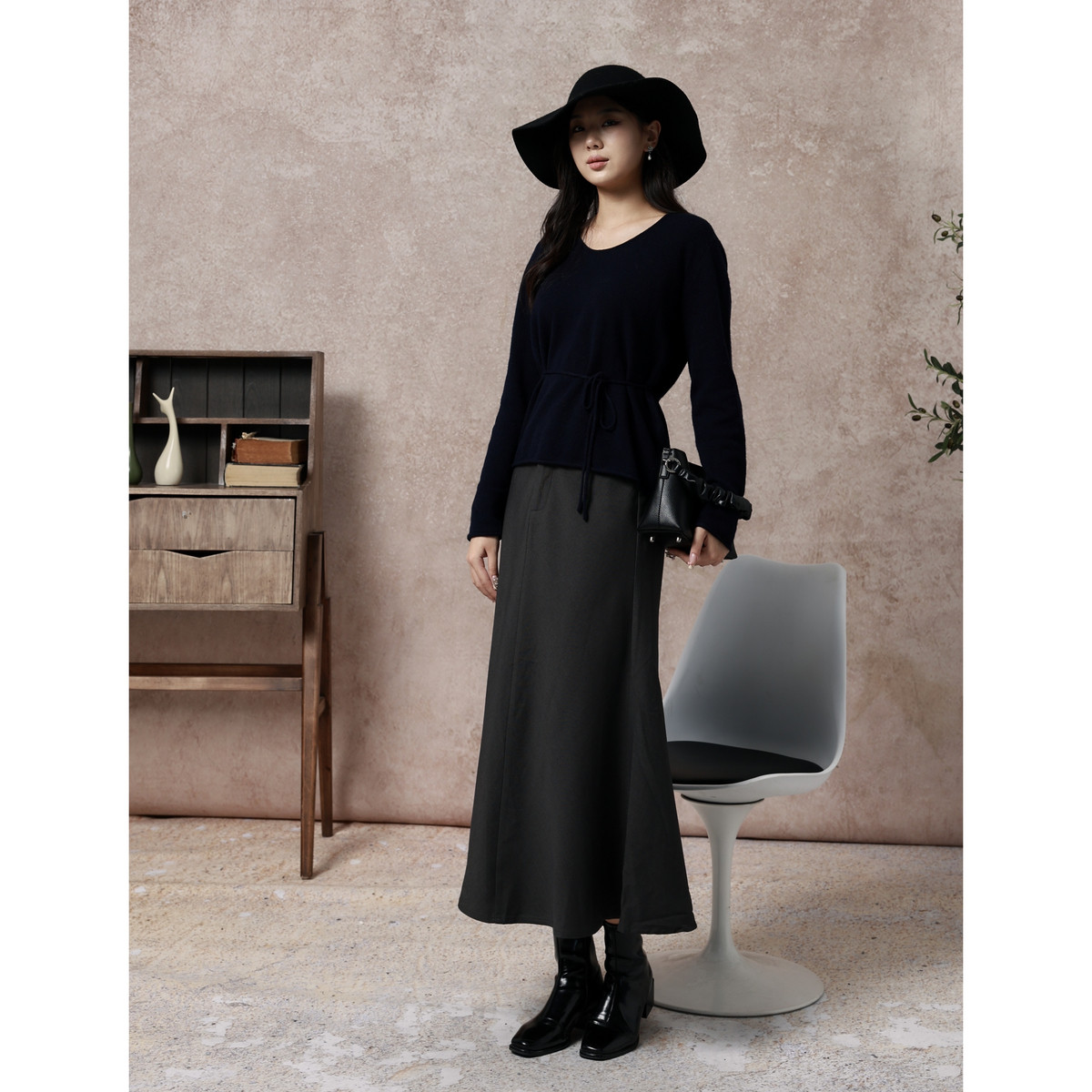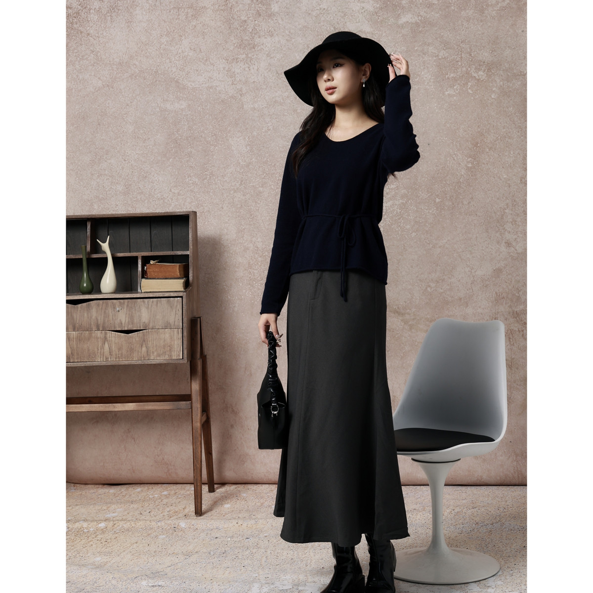 西町村屋气质优雅鱼尾长裙女装秋冬新款法式修身半身裙XX9D10033