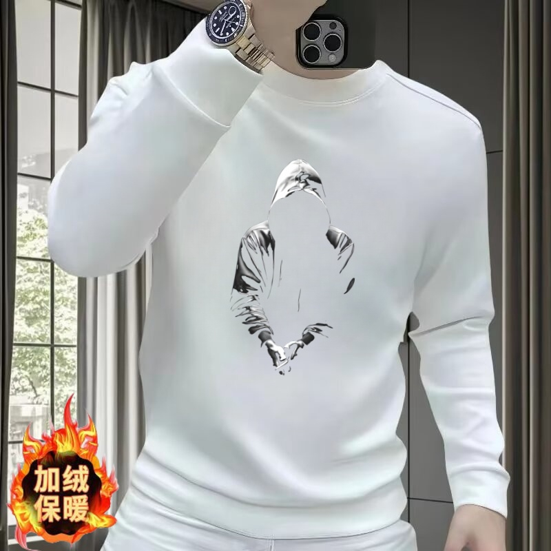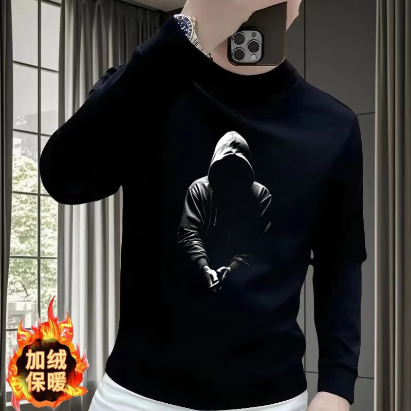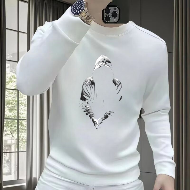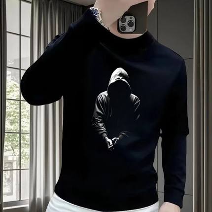 2025秋冬季新款欧洲站高级感人物印花卫衣男士时尚洋气修身长袖男