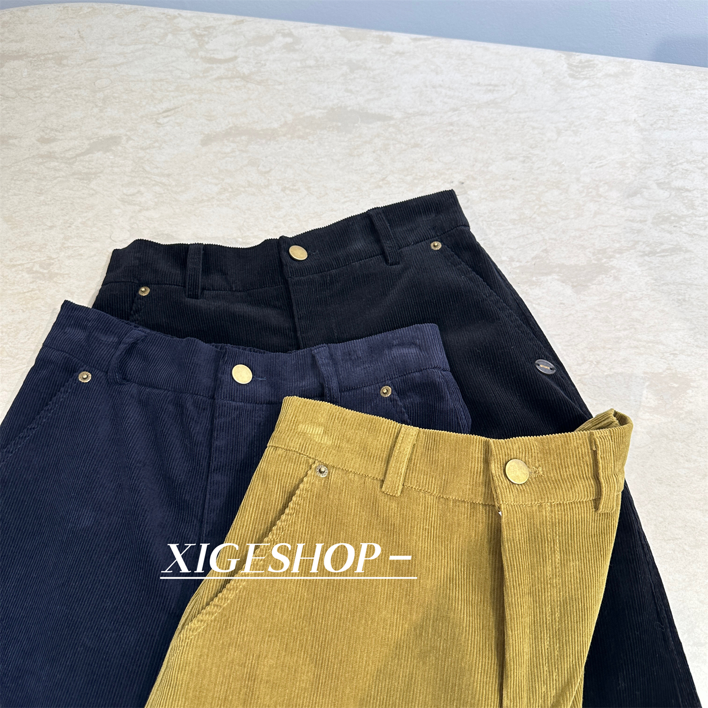 欧货灯芯绒阔腿七分裤女秋冬2025新款高腰显瘦百搭休闲条绒直筒裤