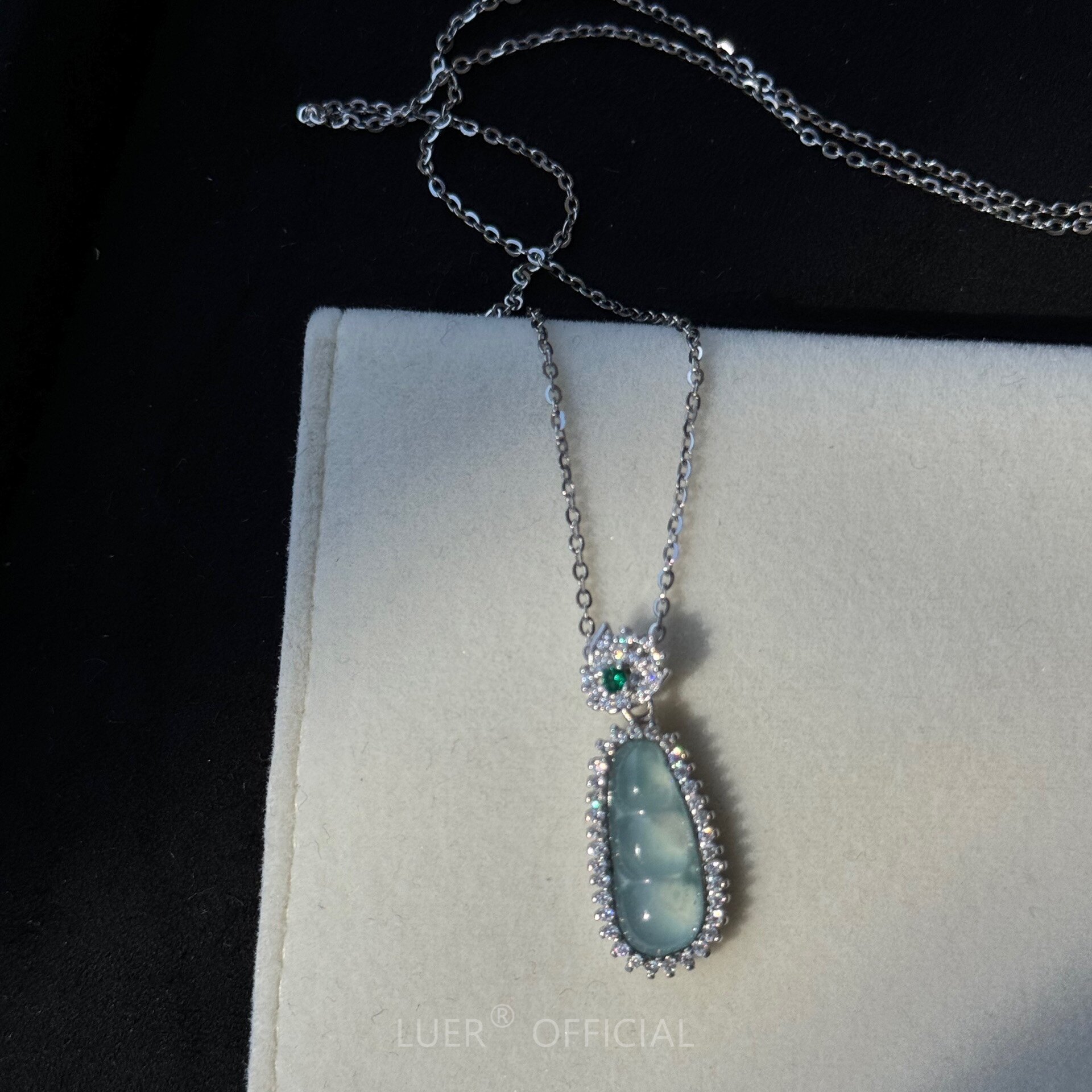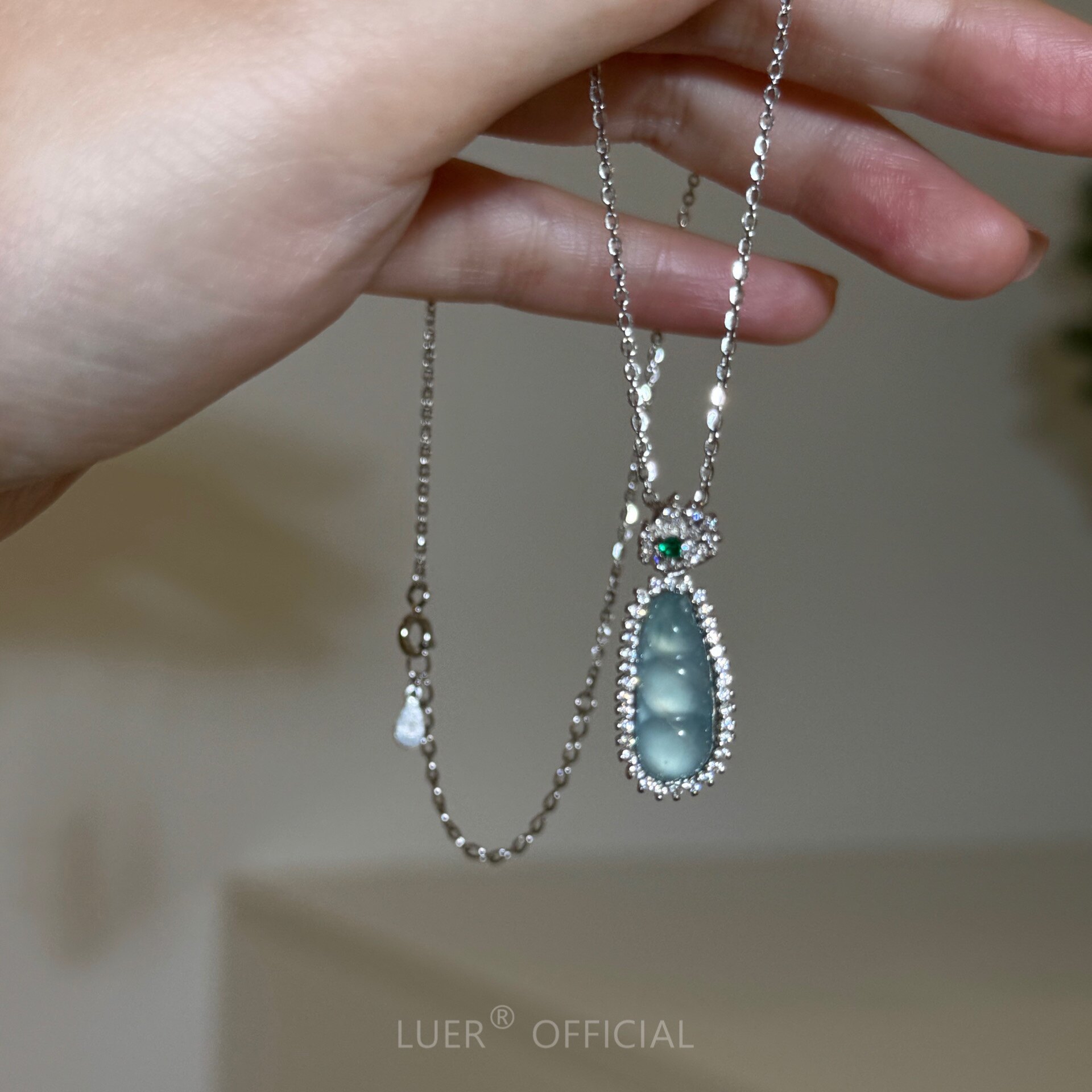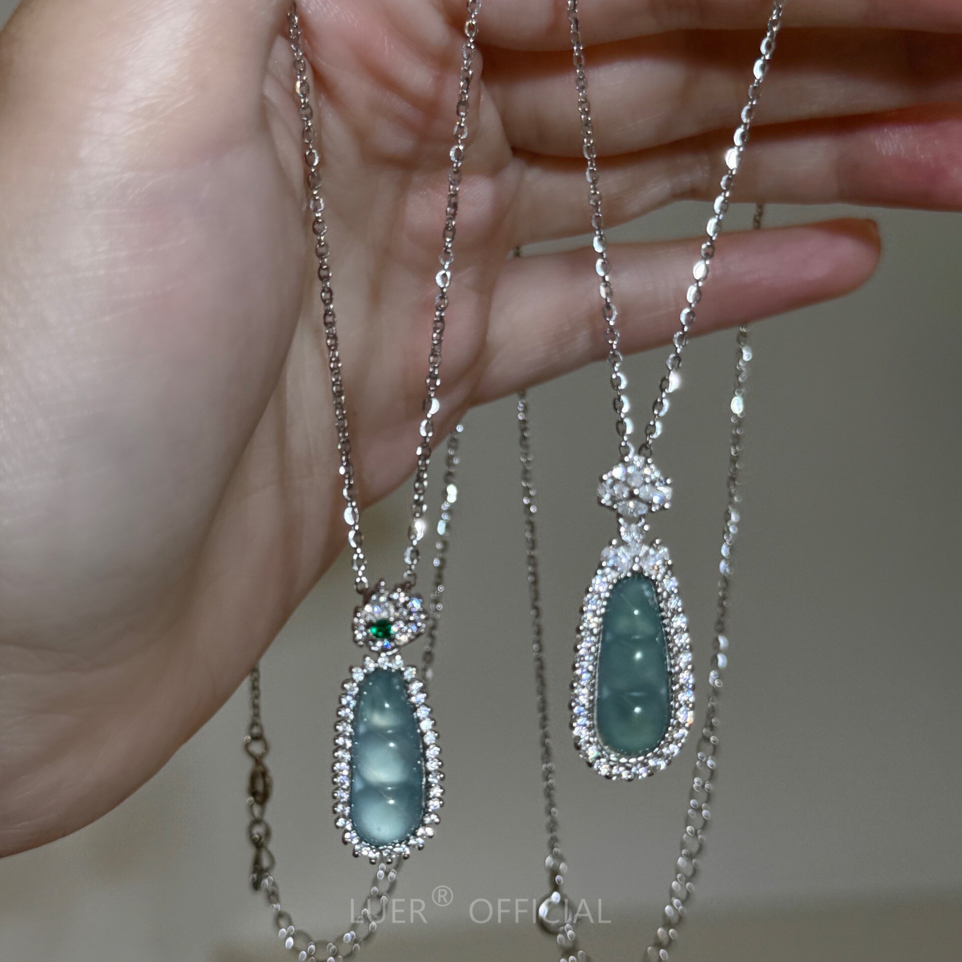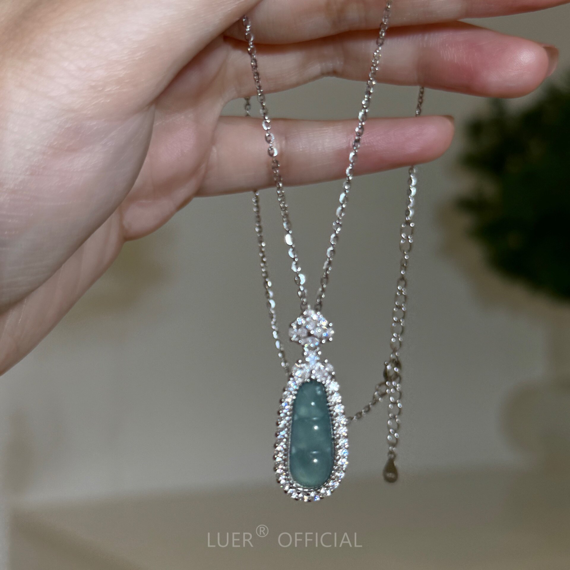 #四季福豆#新中式!天然危料蓝水翡翠!通体纯银轻奢镶钻项链精致女