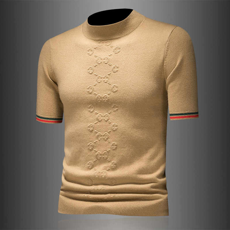 秋冬季男装字母提花短袖羊毛衫潮牌轻奢半高领套头毛衣打底针织衫