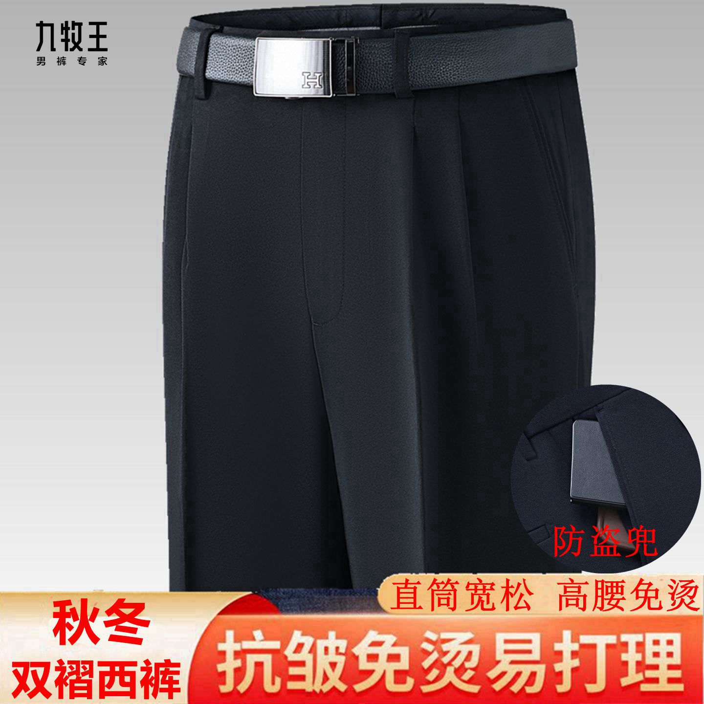 九牧王西裤男中年秋冬厚款直筒宽松男裤高腰抗皱免烫休闲长裤子