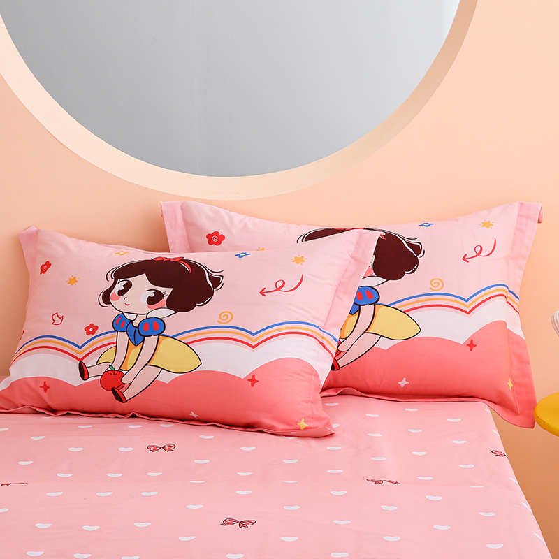 白雪公主纯棉四件套女孩卡通床上用品儿童学生床单人三件套可爱粉
