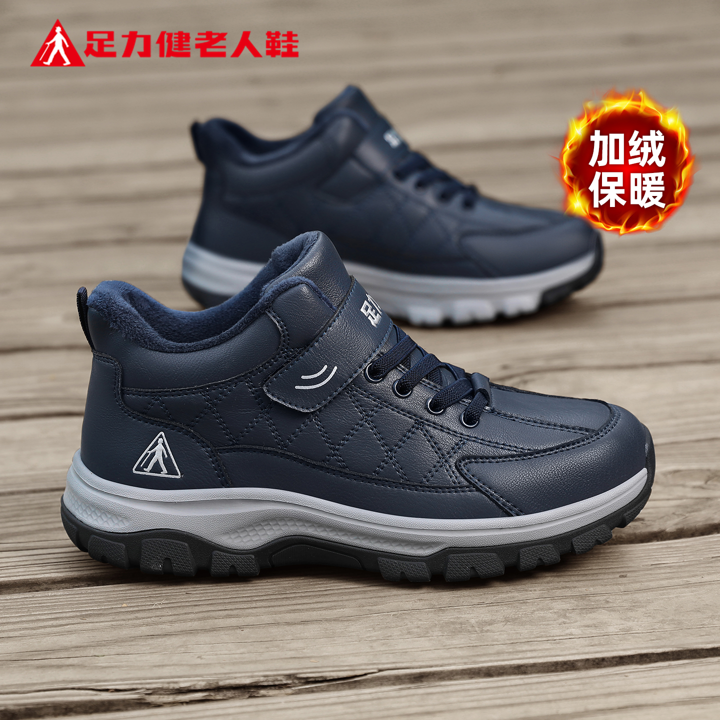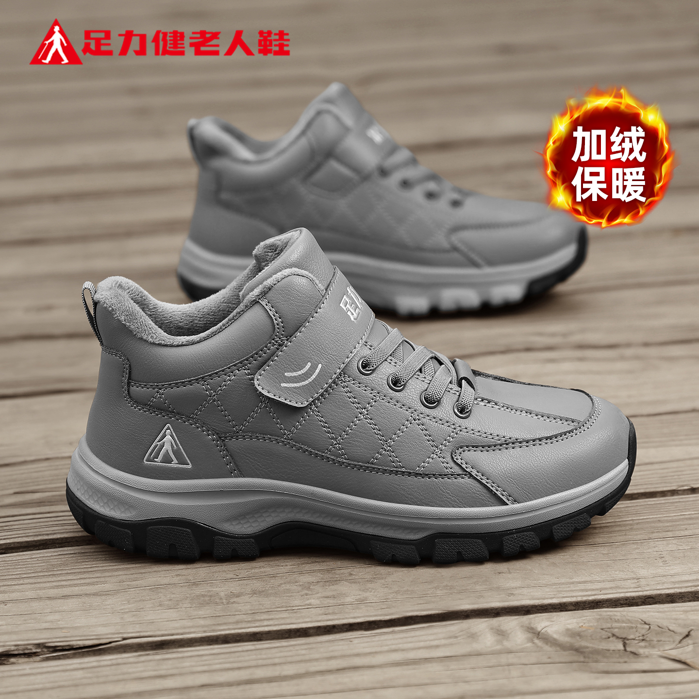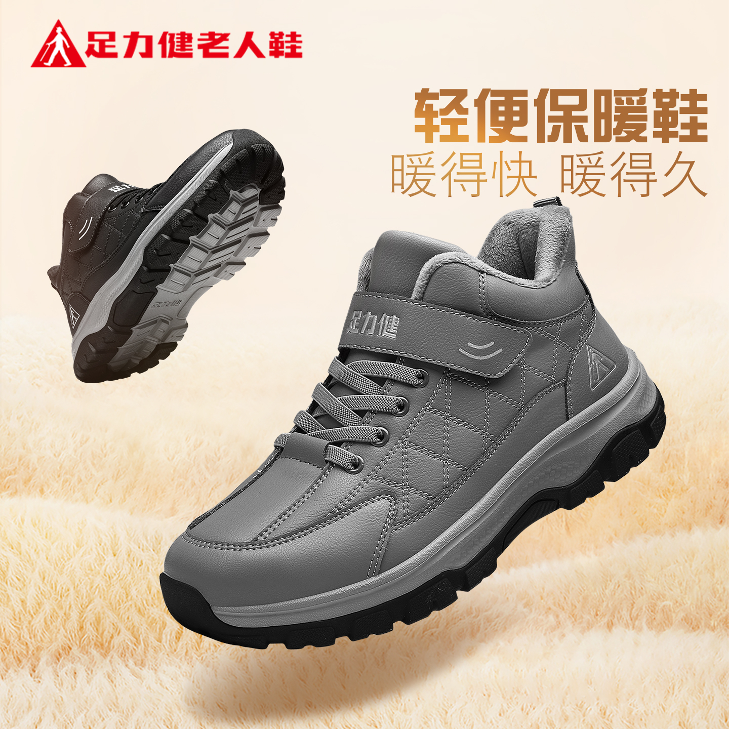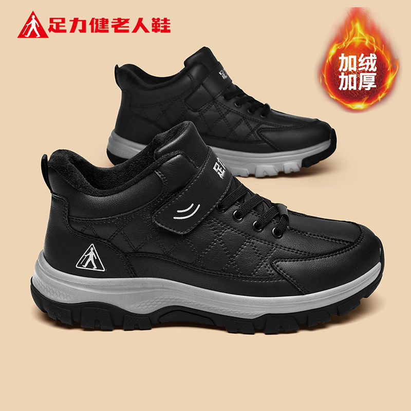 足力健老人鞋官方旗舰店正品棉鞋男冬季加绒加厚中老年爸爸运动鞋