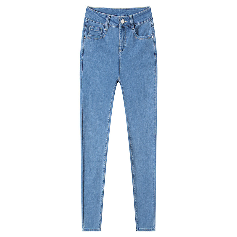 高腰牛仔裤女2022年新款秋欧货弹力显瘦加绒九分紧身蓝色小脚长裤