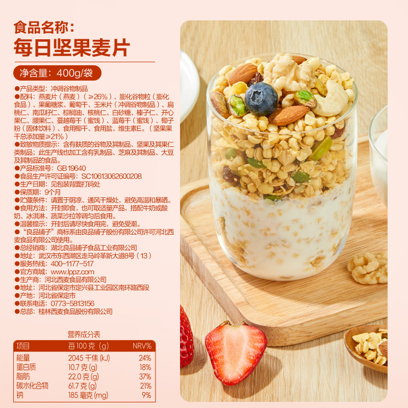 良品铺子每日麦片400g早餐冲饮即食代餐坚果麦片水果酸奶燕麦冲泡