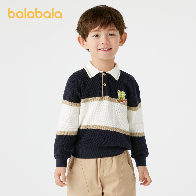 巴拉巴拉童装男童毛衣秋2025新款华夫格针织衫学院风