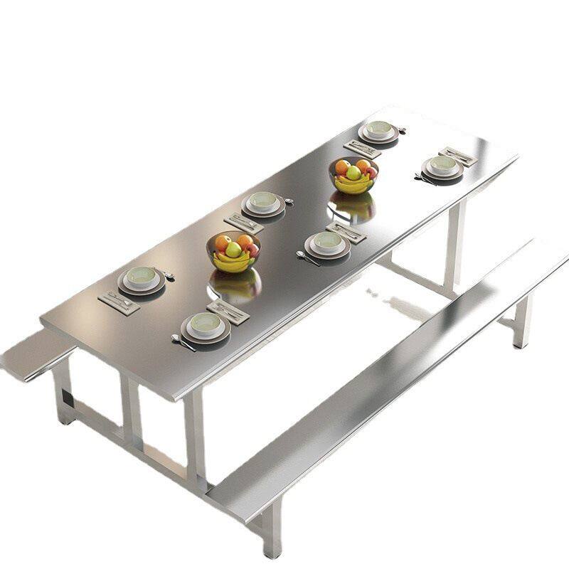 不锈钢餐桌学校学生食堂餐厅员工职工餐桌连体桌椅组合4人6人餐桌