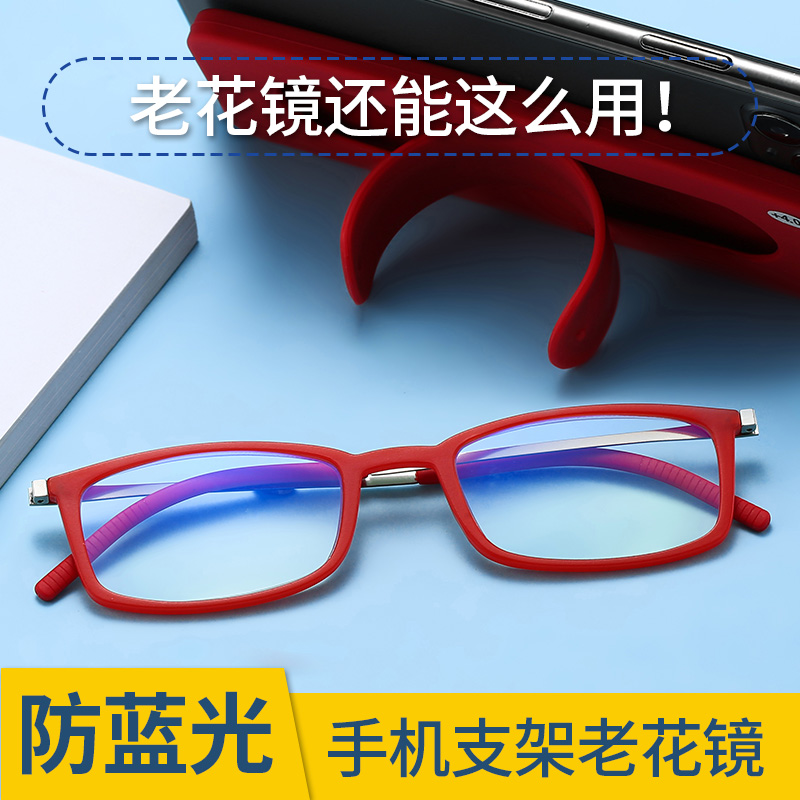 防蓝光老花眼镜男女中老年超轻老光老化镜镜盒可当手机支架100度