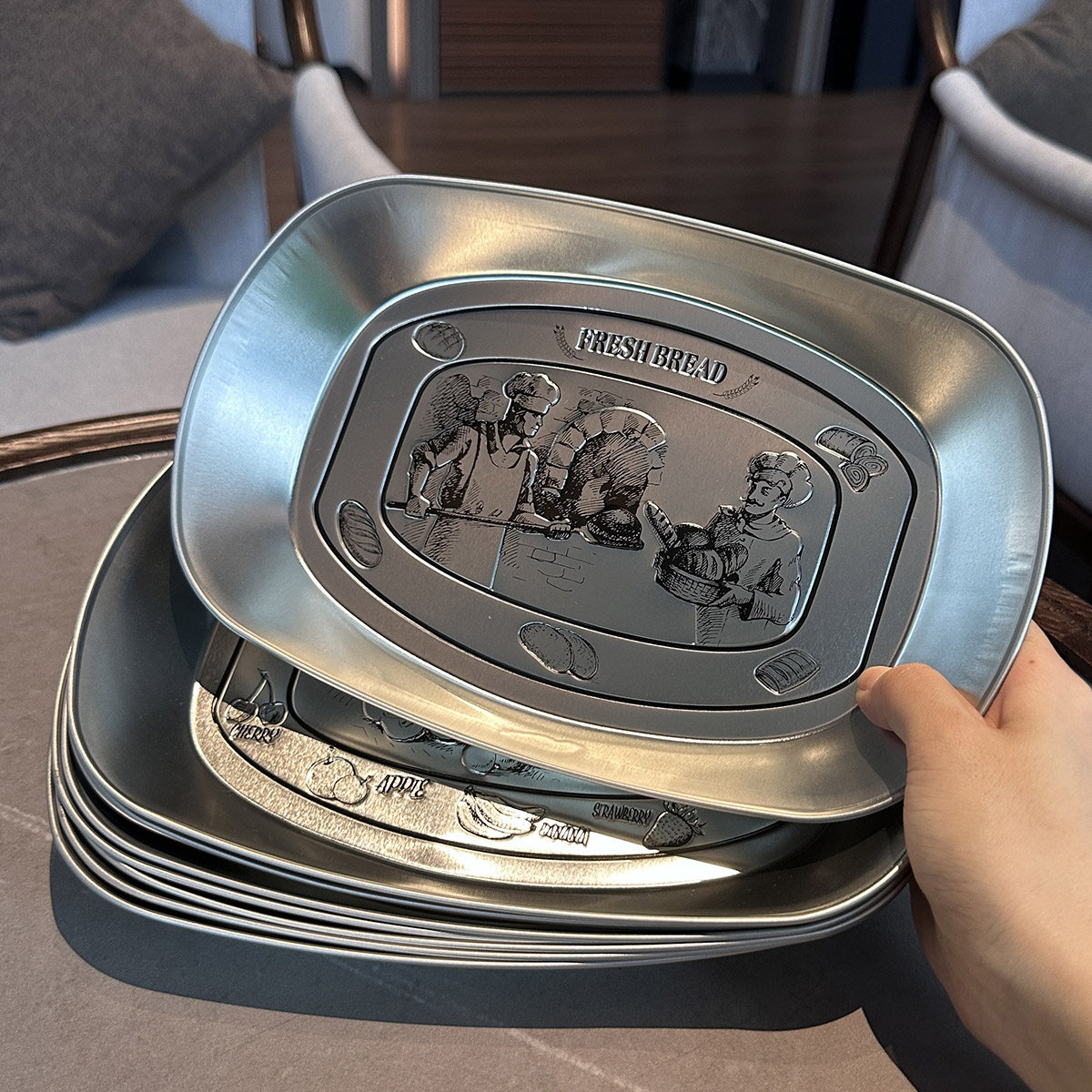 【老板娘野餐用】复古野餐盘薯条炸鸡油炸小吃盘马口铁托盘水果盘