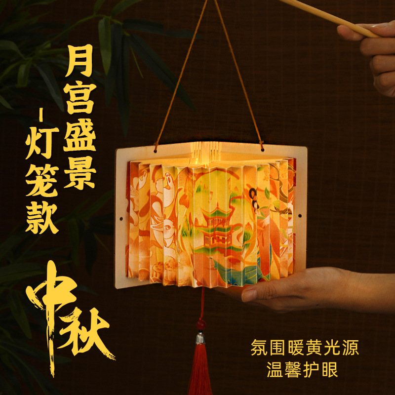 中秋节灯笼手工diy书灯制作材料包非遗古风国风扇形创意折叠手工