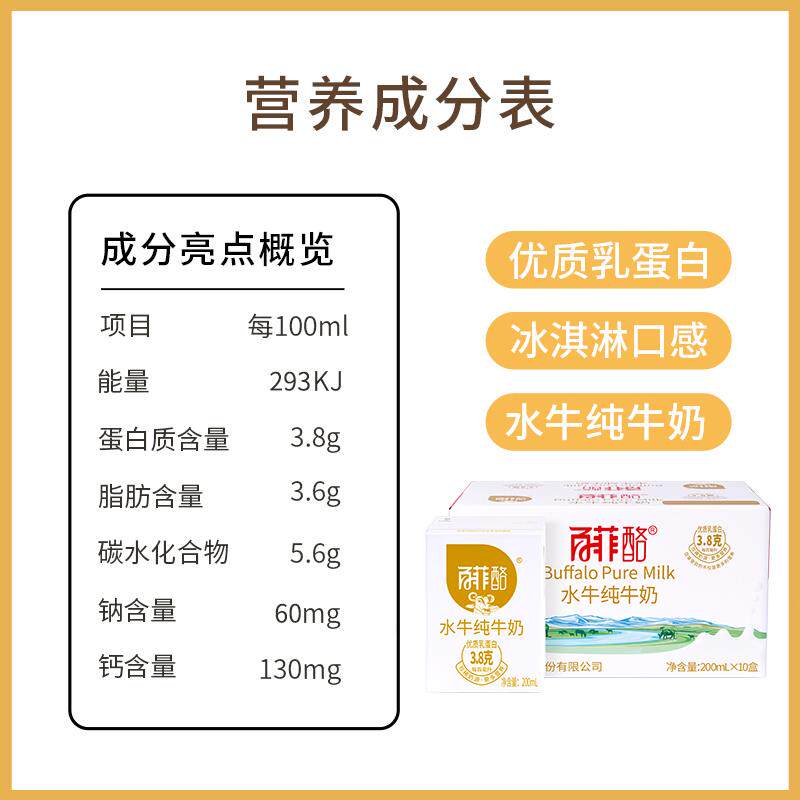 【烈儿宝贝直播间】百菲酪水牛纯牛奶200ml*20盒*2箱