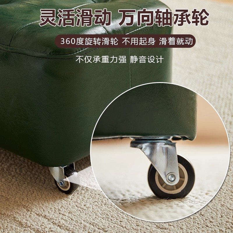 实木万向轮小凳子家用矮凳沙发凳移动溜溜椅子带轮换鞋凳家用板凳