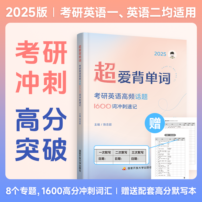 官方现货】陈志超2026超爱背单词 : 考研英语高频话题1600词冲刺速记26考研英语高频话题 默写本英语一英语二历年真题词汇单词书