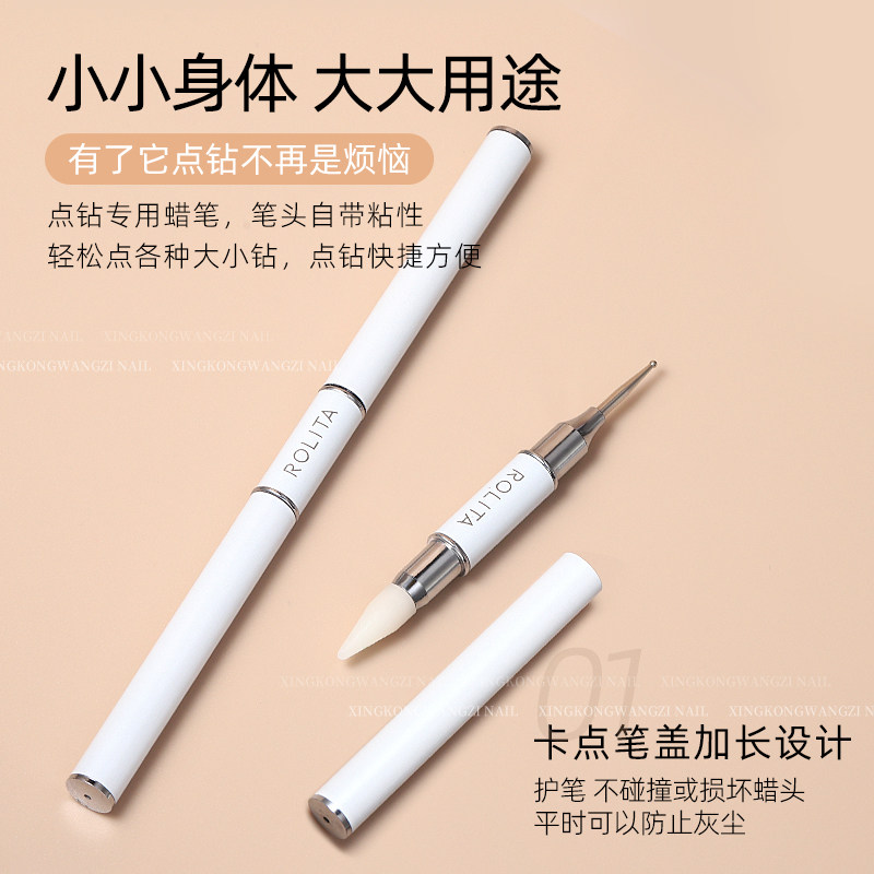 美甲双头点钻笔点珠笔两用指甲点花勾边粘钻点胶笔美甲店专用工具