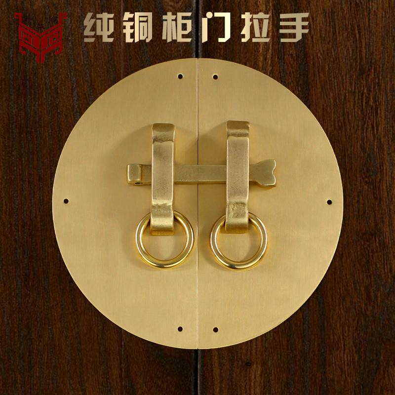 中式家具柜门仿古黄铜圆光拉手复古柜子圆形门把手收纳柜五金配件