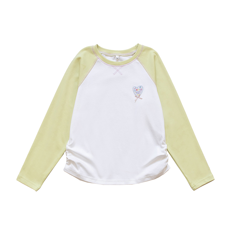 女童上衣撞色抽褶T恤2025春季春款中大童洋气长袖薄款圆领套头衫