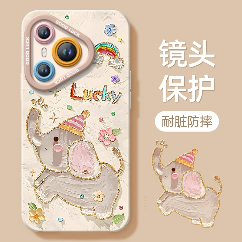 油画小象适用华为Pura80手机壳Pura70pro套p60pro+新款p50硅胶p40保护p7o加p30全包p20高级外壳系列p70ultra