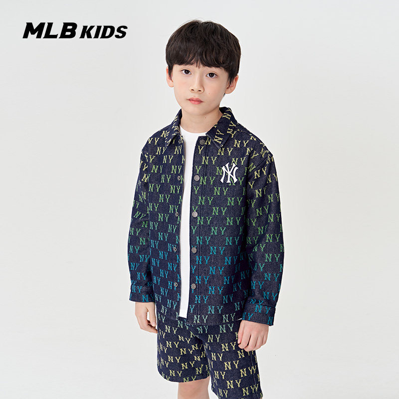 MLB儿童官方男女童潮奢吸睛时髦立领渐变老花牛仔衬衫春季款