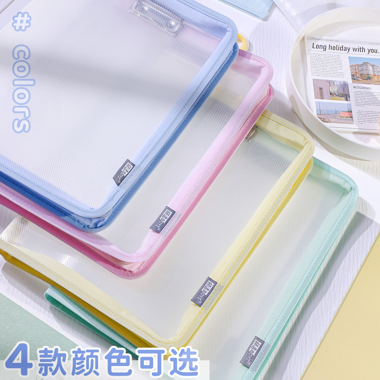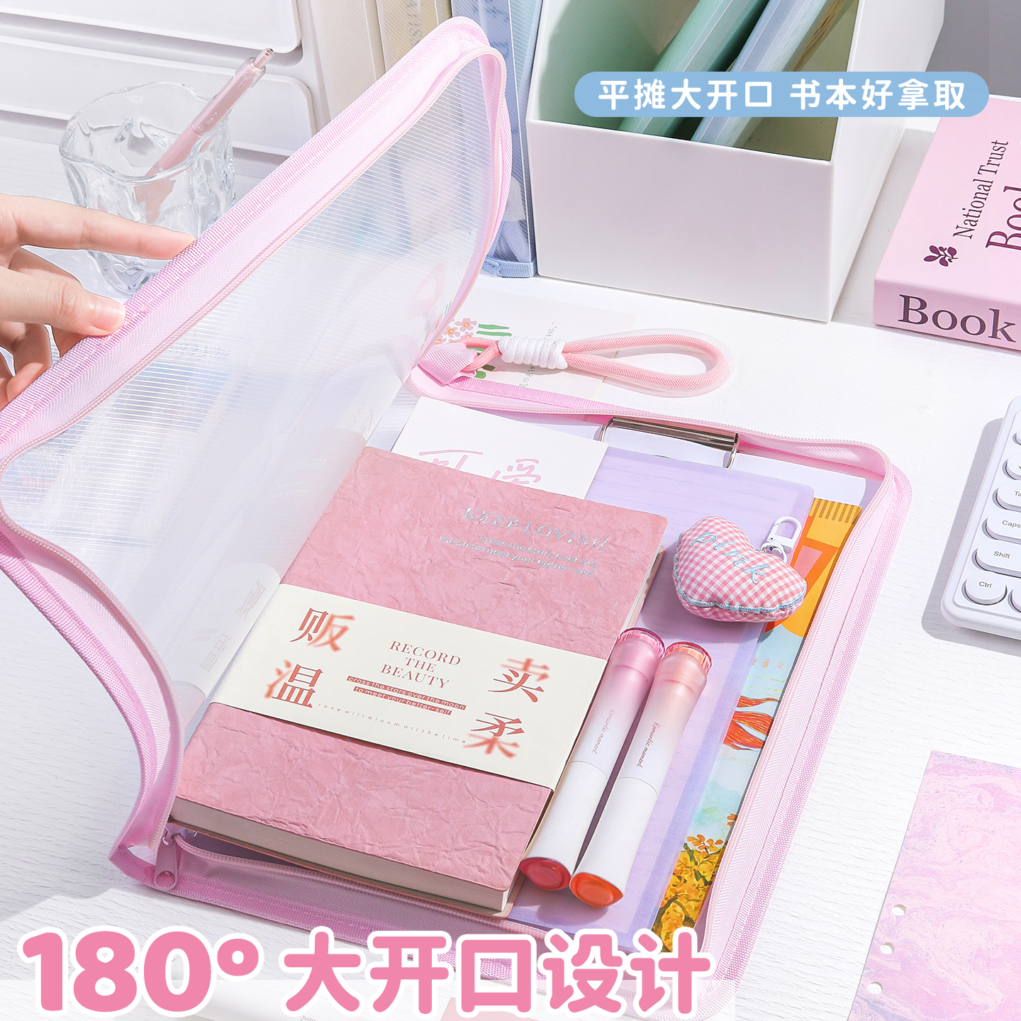 A4透明拉链文件袋加厚大开口学生拎书袋防水考试专用高颜值补习拉链式书本试卷袋收纳手提大容量