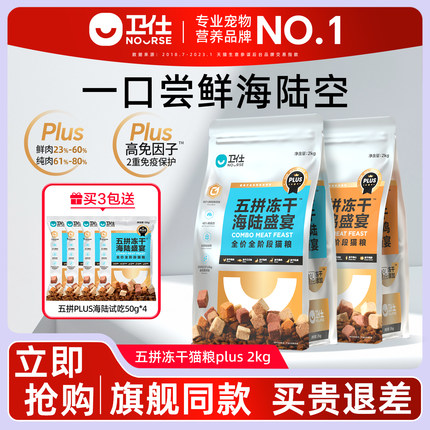 卫仕五拼冻干全价猫粮成猫幼猫奶糕0谷物鸡肉鱼宠物猫咪专用主粮
