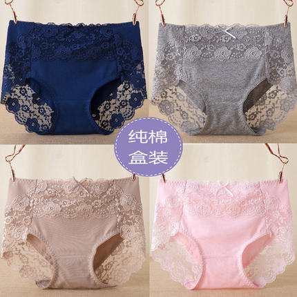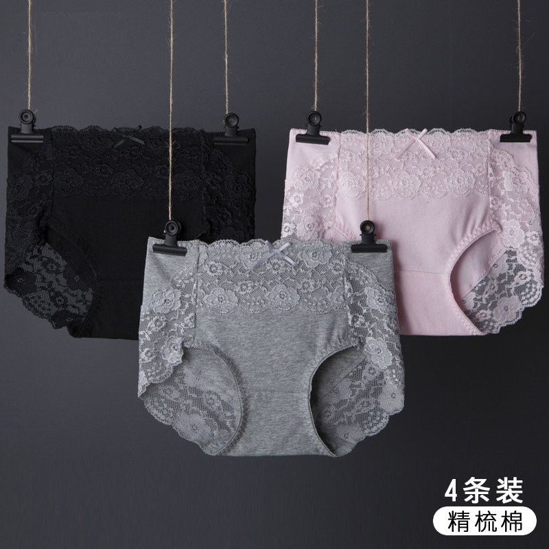纯棉内裤女中腰全棉裆蕾丝边性感透气无痕包臀收腹大码三角裤少女