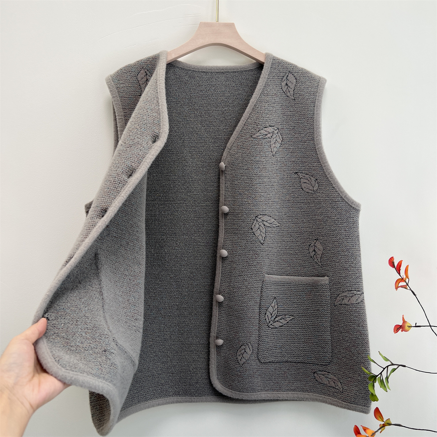 中老年人奶奶秋装针织马甲外套