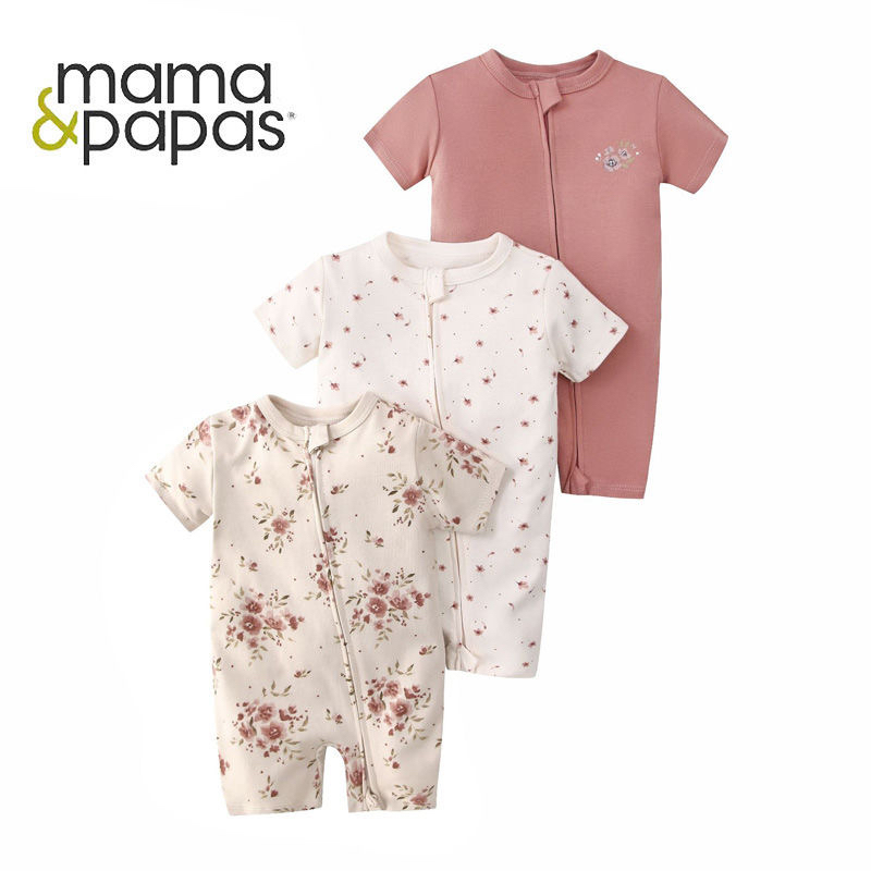 mamaspapas婴儿双拉链连体衣空调短袖哈衣夏季女宝宝外出爬服bb衫