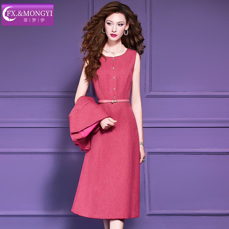 菲梦伊原创小香风套装女秋季大方得体气质收腰无袖连衣裙西装外套
