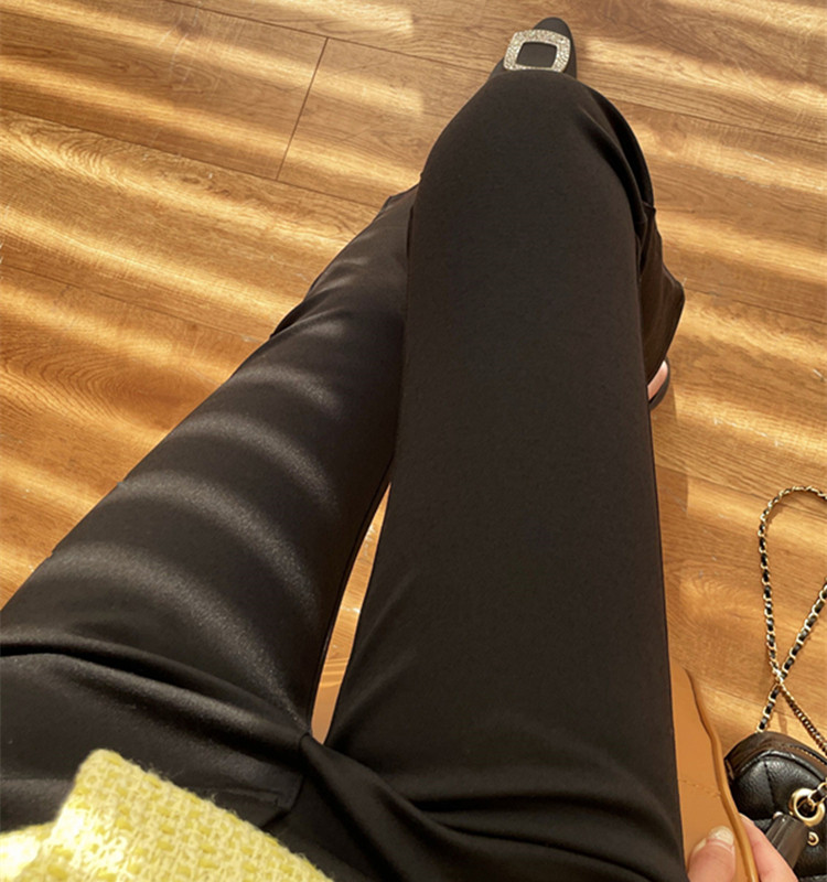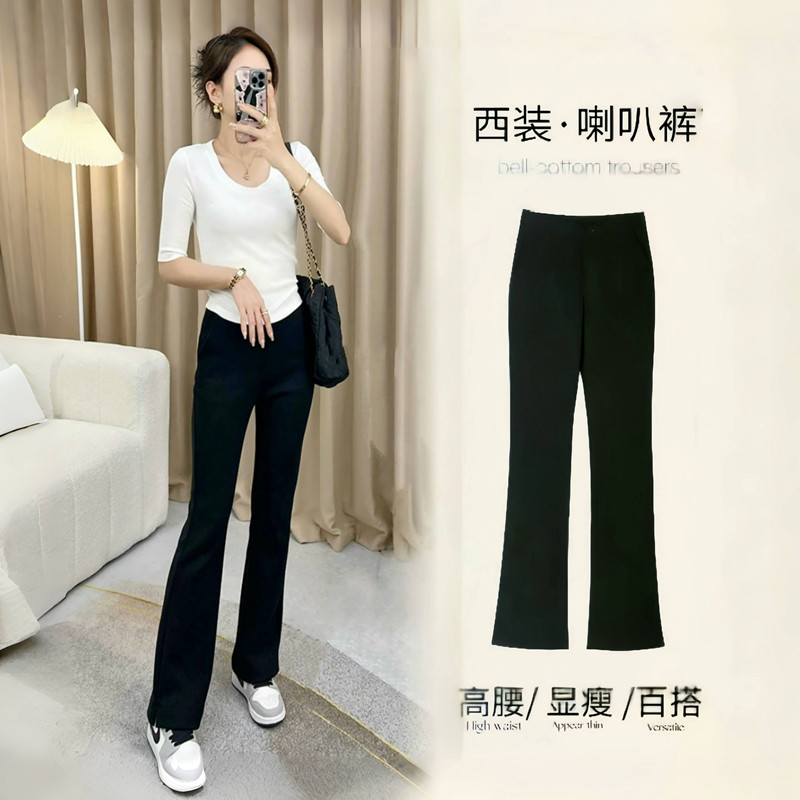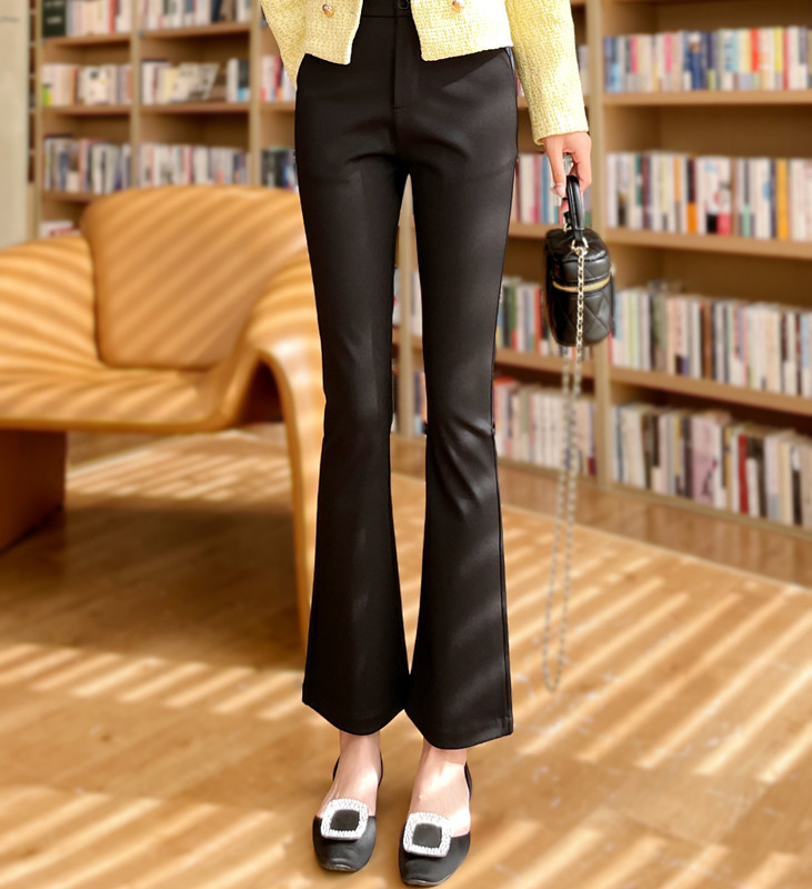 微喇叭裤女九分秋冬黑色高腰显瘦修身薄绒休闲小阔腿西装微喇裤子