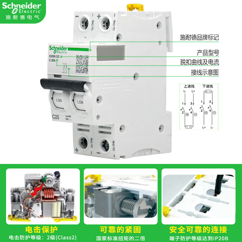 正品施耐德2P直流空气开关1P断路器空开IC65H-DC 40A16A20A32A63A