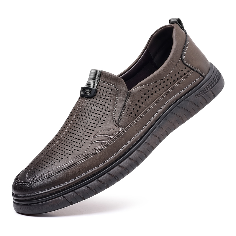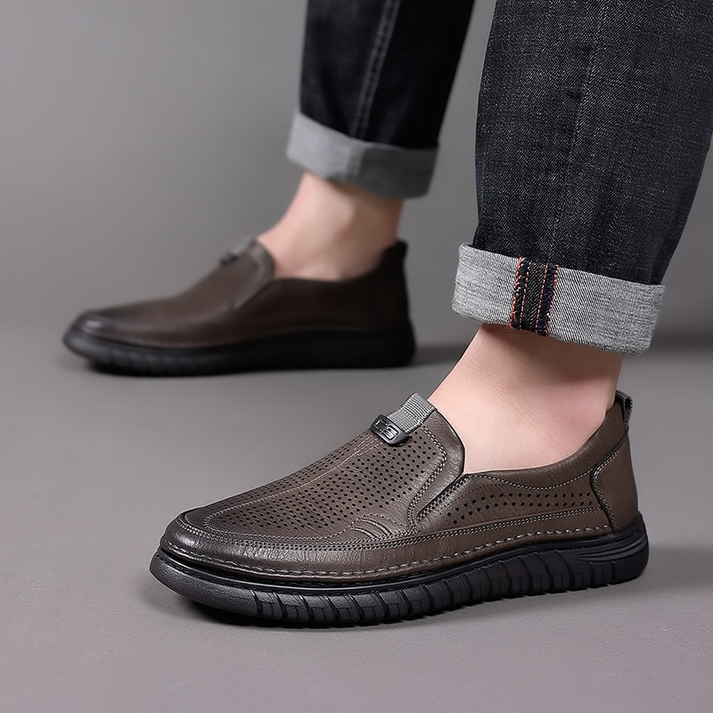 男鞋2025新款夏季薄款男士休闲洞洞皮鞋真皮软底镂空透气爸爸鞋子