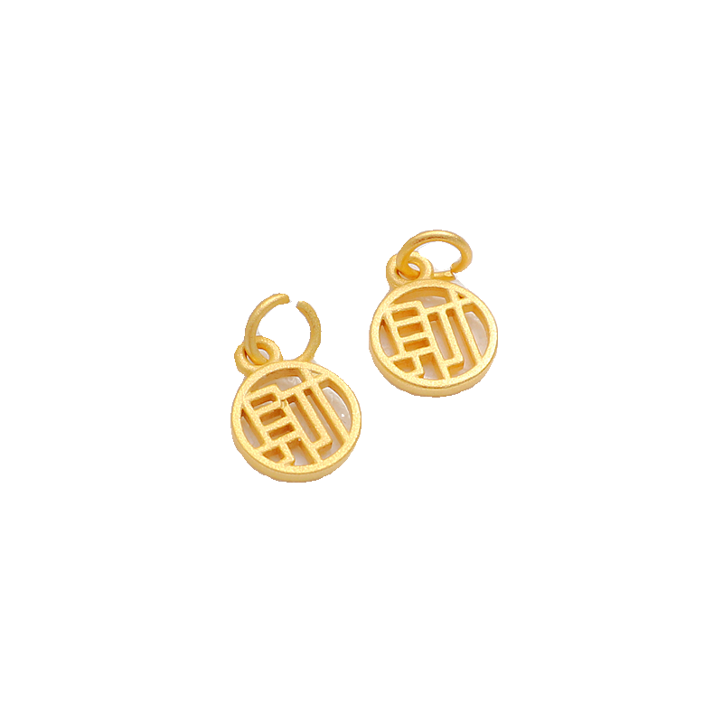 18K保色古法沙金14K包金镂空字财福平安喜乐吊坠diy饰品吊牌配件