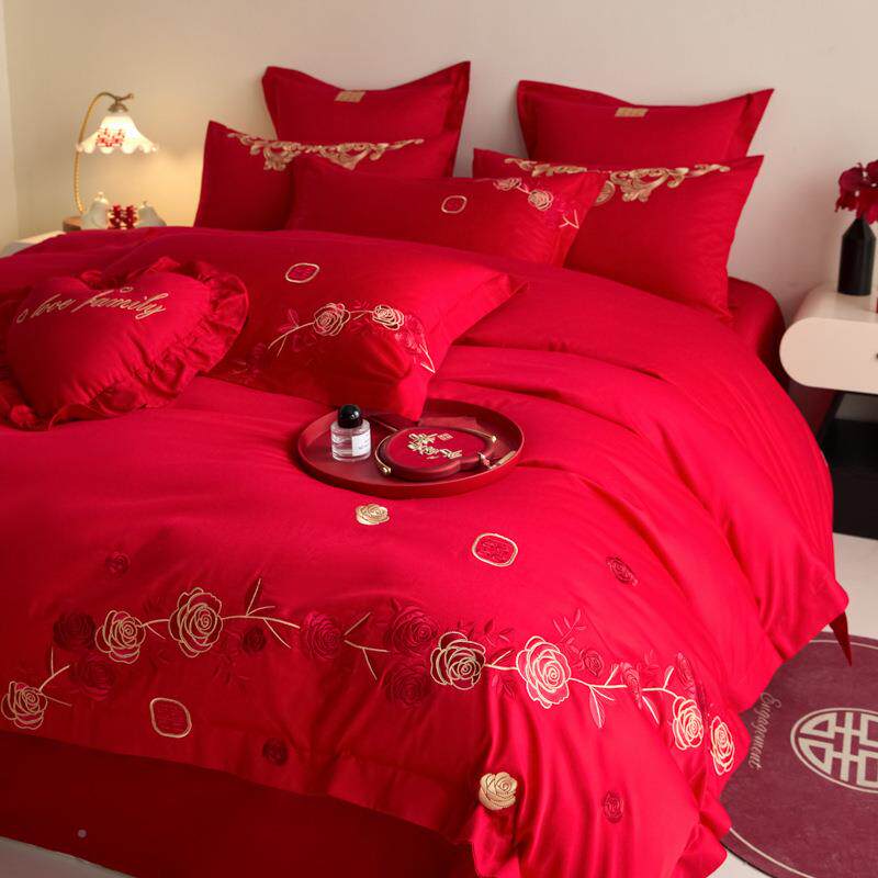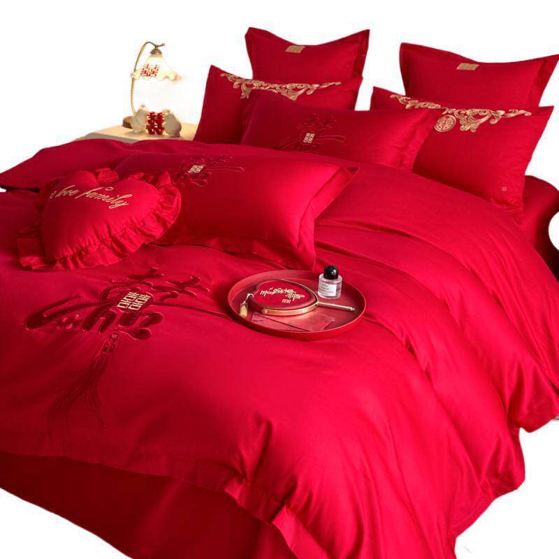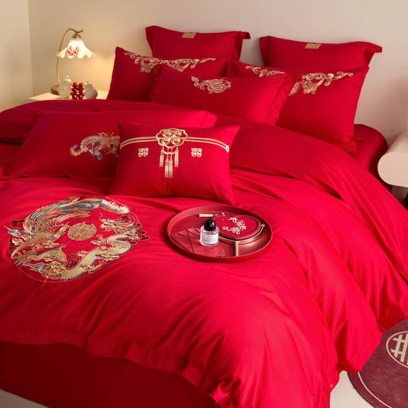 25新款婚庆dfhm72862四件套中式喜庆结罩婚床上0用品大红床单被套