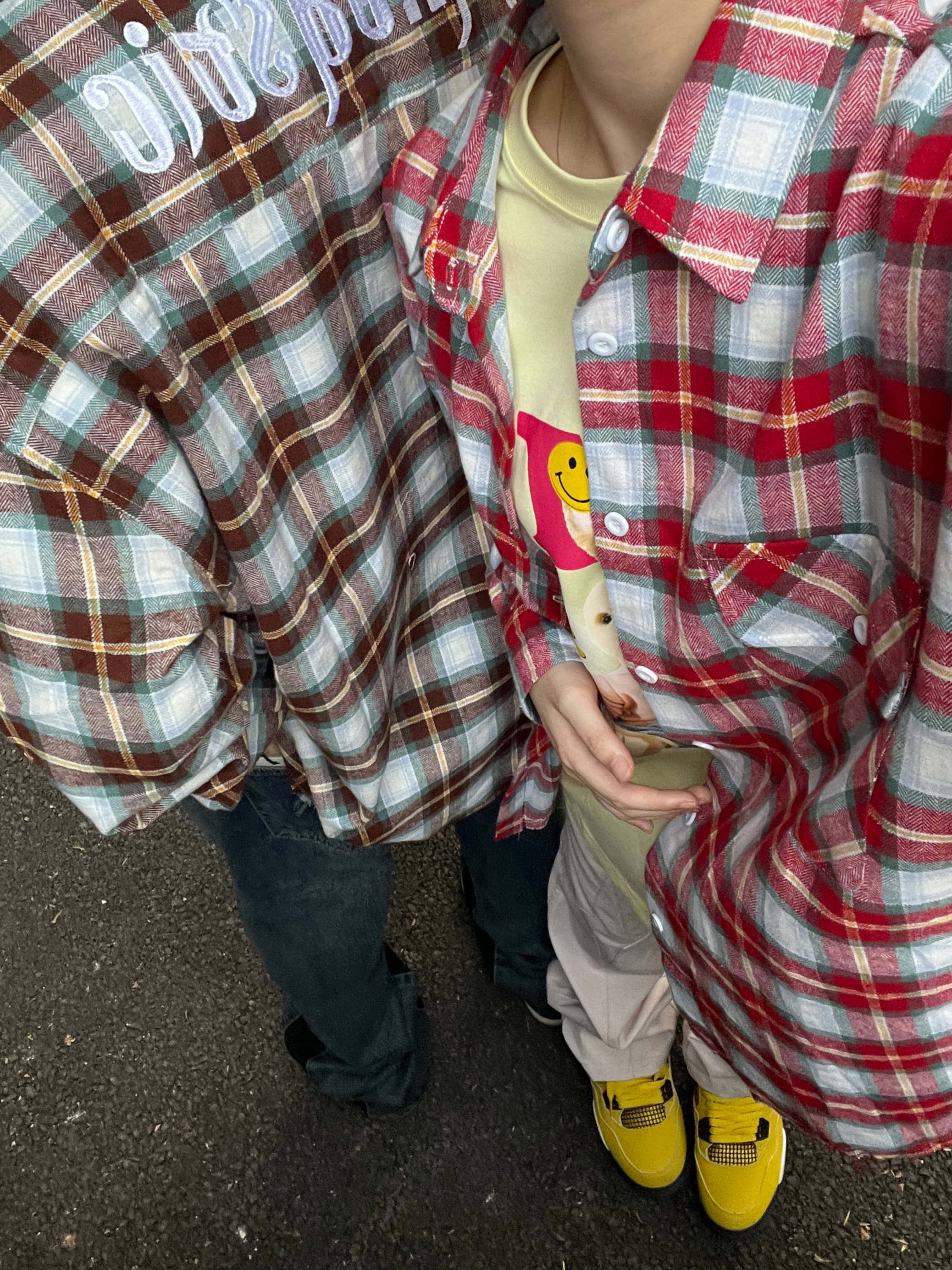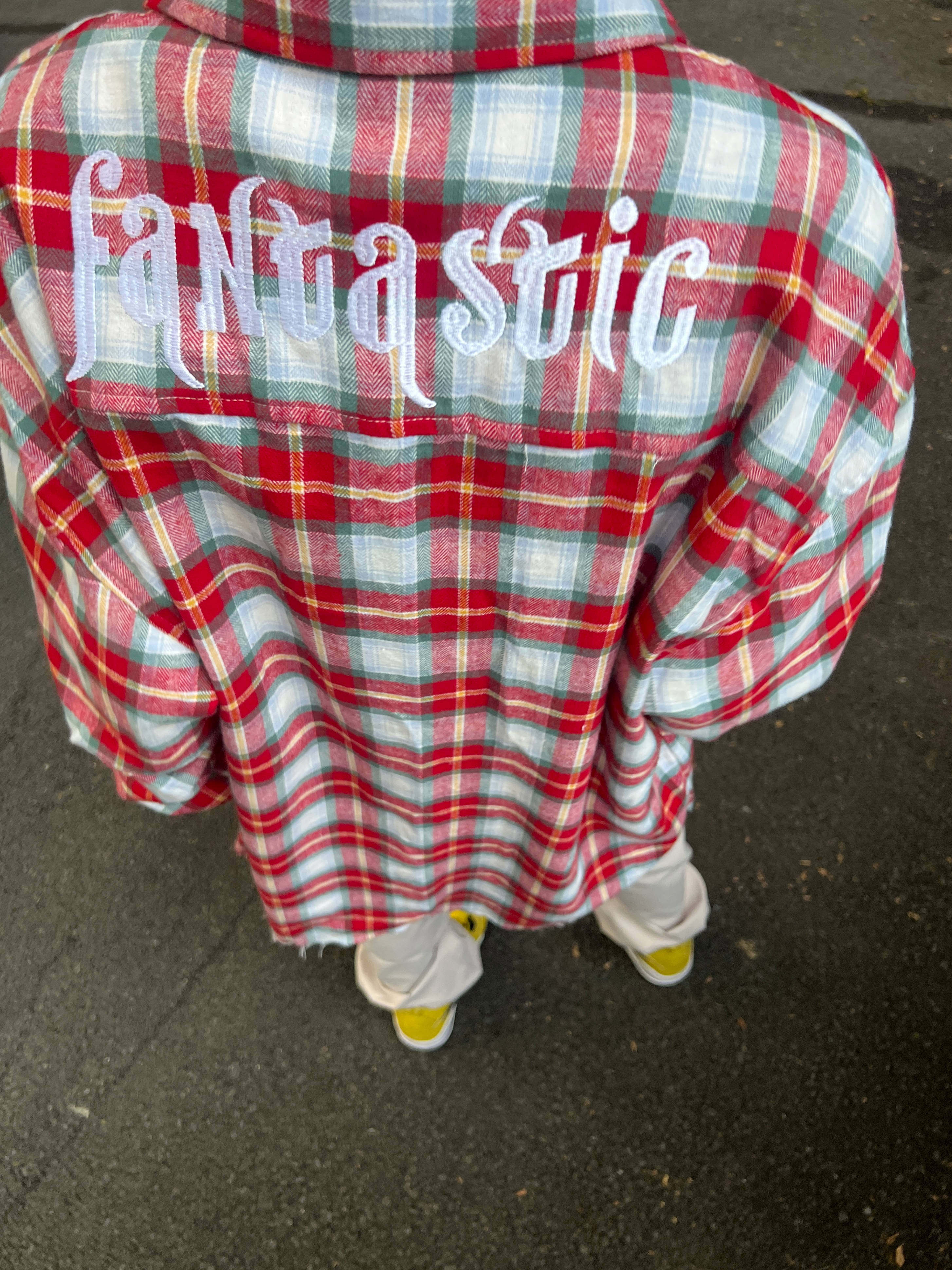 F383 2023AW国潮原创美式复古百搭毛边字母刺绣格子衬衫情侣外套