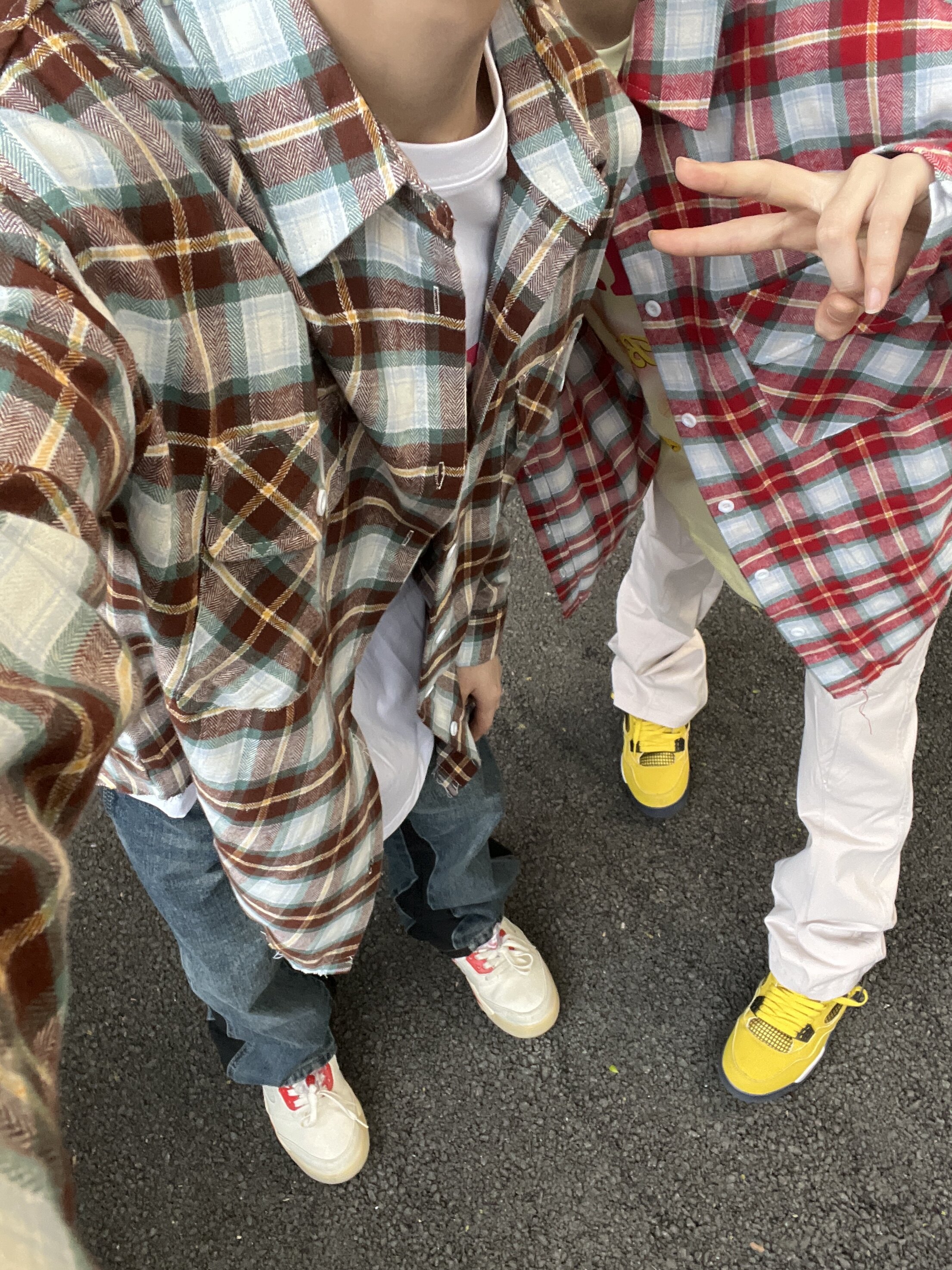 F383翻领长袖格子毛边衬衫