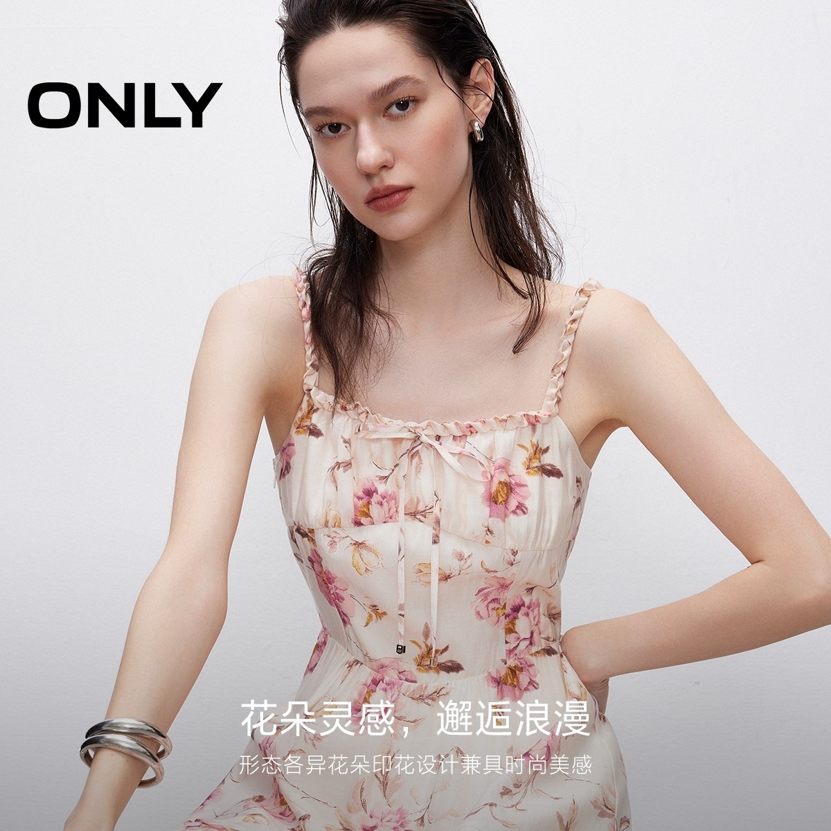 ONLY2025秋冬新款法式仙女风优雅收腰印花中长款吊带裙连衣裙女