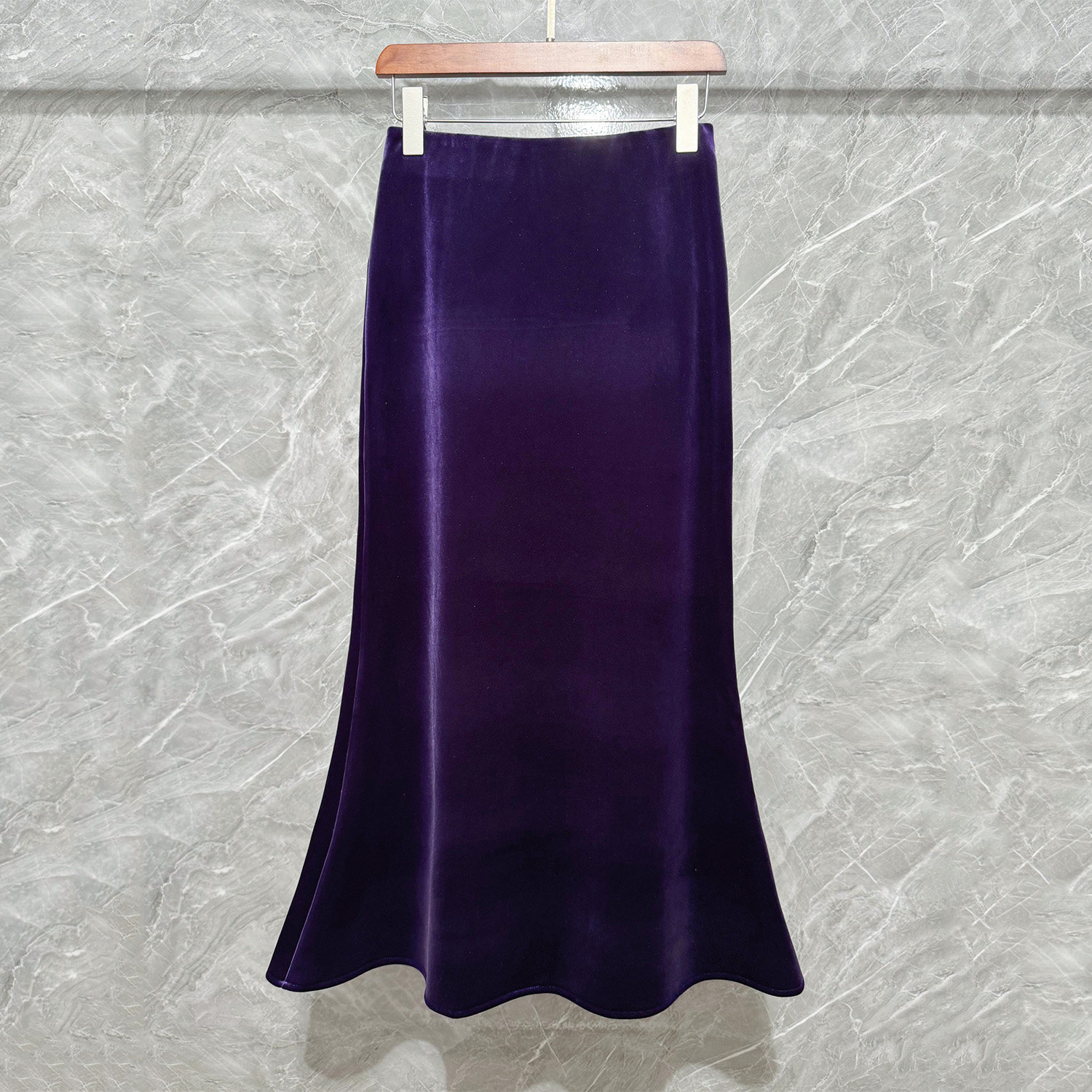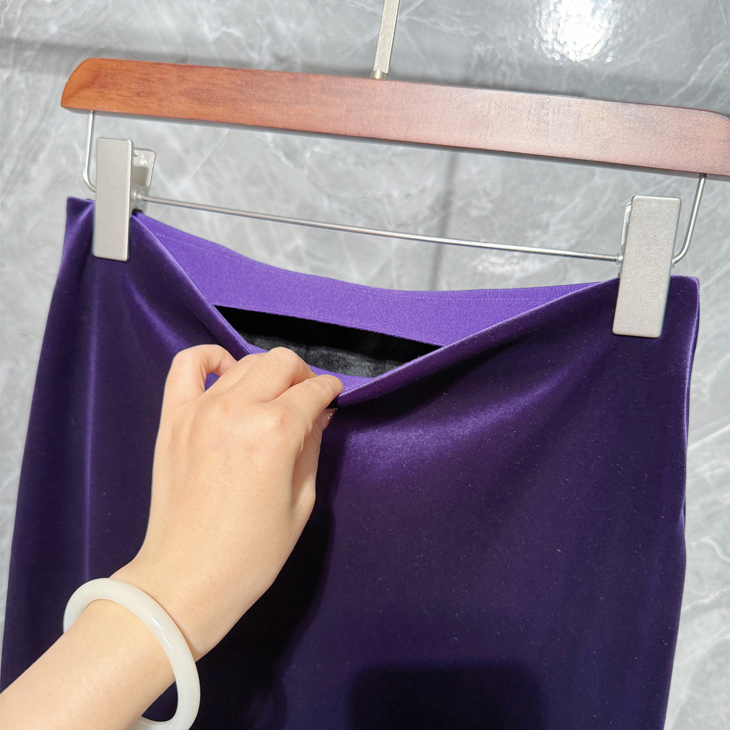 南油高端半身裙女秋冬加绒加厚丝绒裙子高腰显瘦包臀裙长款A字裙